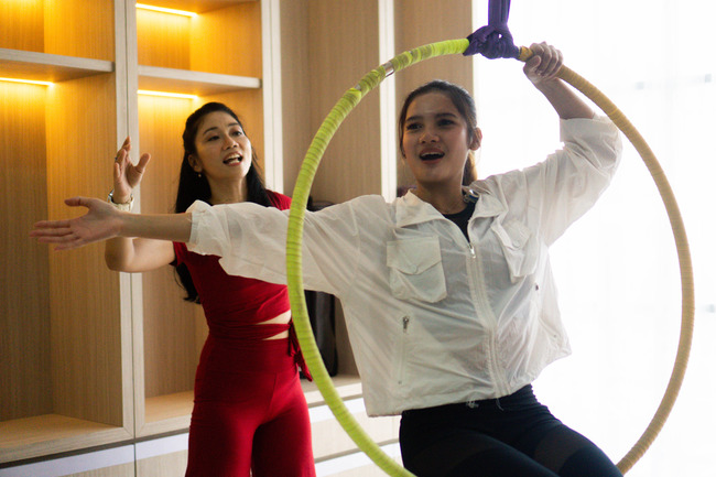 “Jump through aja saya nggak pernah tahu. Jadi ya bener-bener belajar dari nol, latihan, belajar lagi. Sementara teman-teman yang lain sudah bisa, saya masih bisa satu dua kali coba,” kenangnya.